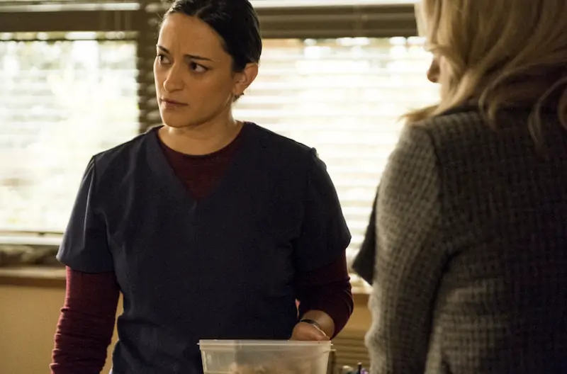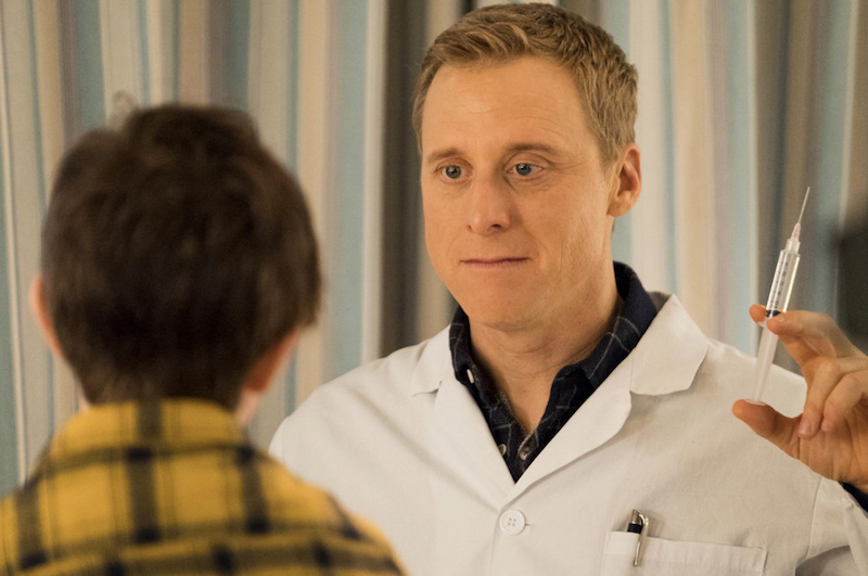 Harry (Alan Tudyk) has a lot going on in his life right now. After reluctantly coming into town to help with the murder investigation of the local town’s doctor, Sam Hodges (Jan Bos), he finds himself filling in for him as well for the time being — when all Harry wants to do is find the device that fell off his ship to complete his mission. Oh, and let’s not forget that Max (Judah Prehn) can see him in his alien form, so he must die. It is time to check in with Harry Vanderspeigle and the other Patience, Colorado residents, and see how they are doing in the second episode, “Homesick.”