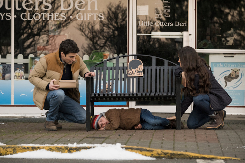 After meeting Asta’s (Sara Tomko) dad, Dan (Gary Farmer), he sees the poster of his face, his real face, plastered all over town. It causes Harry to panic and thinks about leaving town or changing bodies, but then he remembers how hard it was the first time. We see him learning to walk, sit down, eat, brush his teeth, smile, and more during the flashback. He prank calls Max to tell him that the alien left town, but Max easily figures out that it’s him and hangs up, leaving Harry to say, “That’s it, I’m going to kill him.”