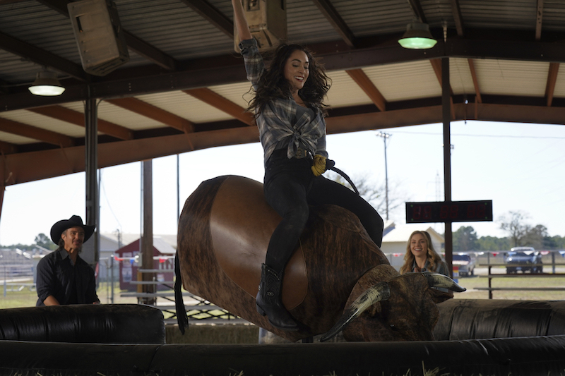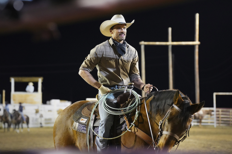 The photos show Auggie and Cordell in the middle of a conversation that doesn’t seem too pleasant, something that is almost sure to be a result of Cordell having to go undercover once again. Other stills include Micki riding a bull, Ruby standing by a car (is August underground for some reason also?), Walker looking on mysteriously, and Walker with a woman named Twyla Jean — is this perhaps the mysterious run in from his past?