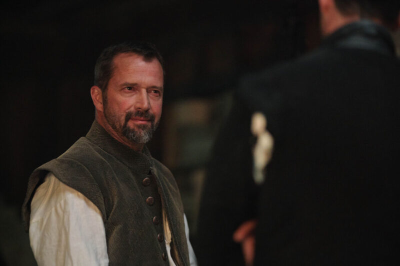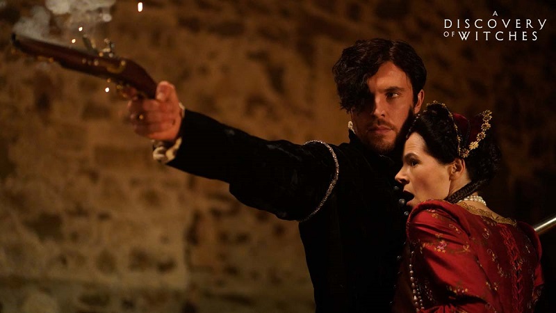 The mood is tense when Matthew and Diana approach Philippe inside the castle. His father calmly expresses his displeasure over the fact that he had to find out that Matthew was with a witch through his spies, rather than from his son himself. Diana interrupts, confidently informing Philippe that she is not just a witch but also a weaver. Philippe, however, has lived far too long to find this news impressive by any means. Much to Matthew’s dismay, Diana proceeds to make another comment alluding to the fact that she’s from the future. Philippe, who has already heard from Father Hubbard that Matthew is a “changed man,” then gathers that Diana is a timewalker.