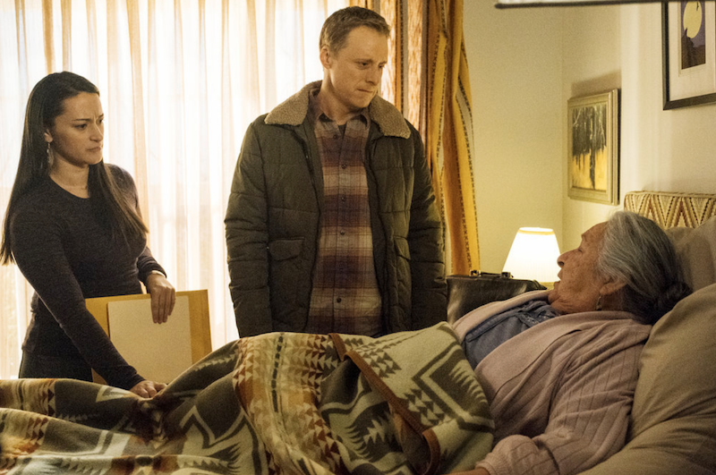The next day Asta, Harry, and her dad Dan (Gary Farmer) go for a family member’s birthday. Harry is there to give the injection to her grandmother. When they first arrive, Harry sees the large family and how warm and welcoming they are towards him and honestly seems happy. After giving her grandmother the shots, Asta is holding a baby and gets the question of when she will have one. Harry says that she already has one, and her name is Jay (Kaylayla Raine). Everyone is taken aback as Asta runs out of the room. Asta later has a touching heart to heart with Dan, “Even when we are not okay, we will always be okay.”