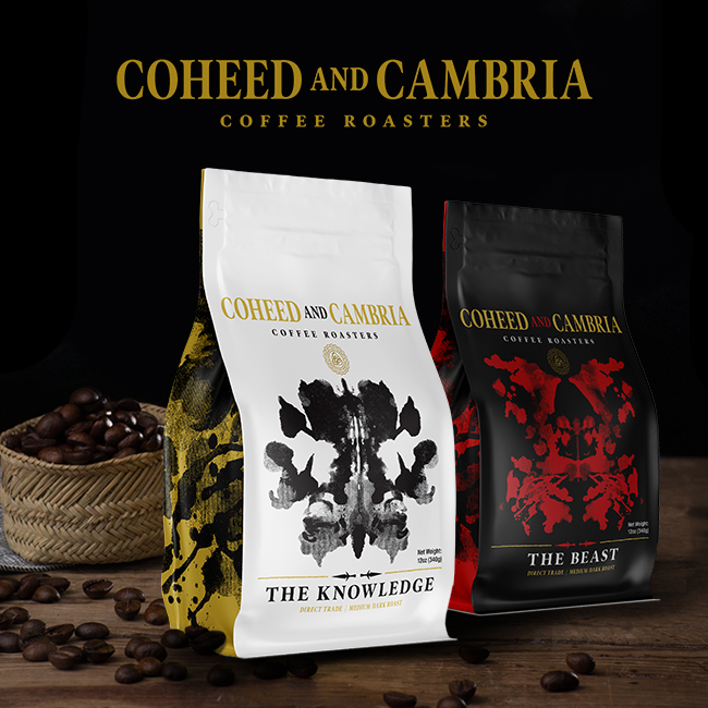 On February 18, the group announced Coheed and Cambria Coffee Roasters, which offers two different blends of coffee — The Beast and the Knowledge. Both are available either as ground coffee or whole bean. Along with the coffee itself, Coheed revealed other products available, including mugs and insulated travel bottles corresponding with each coffee, as well as an insulated pour over coffee maker/carafe.