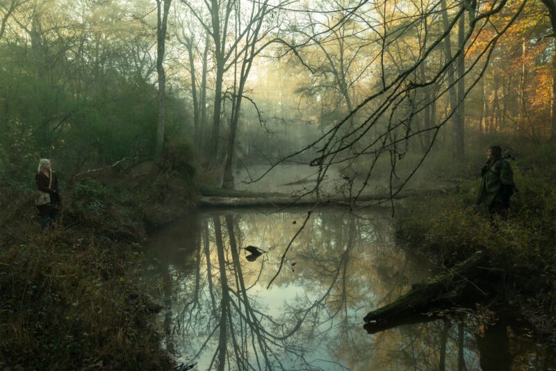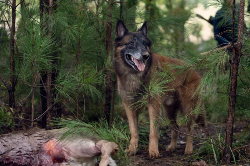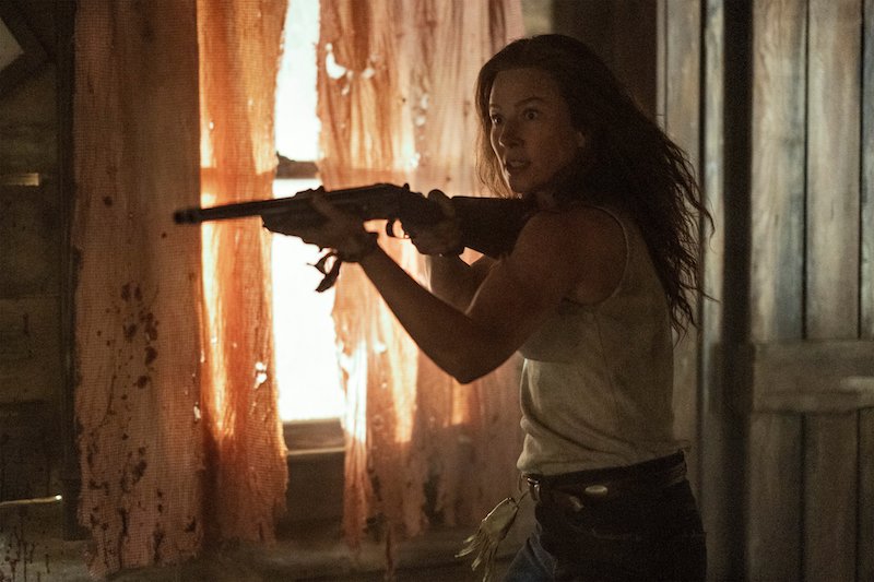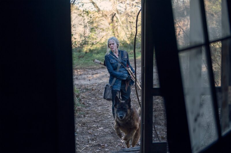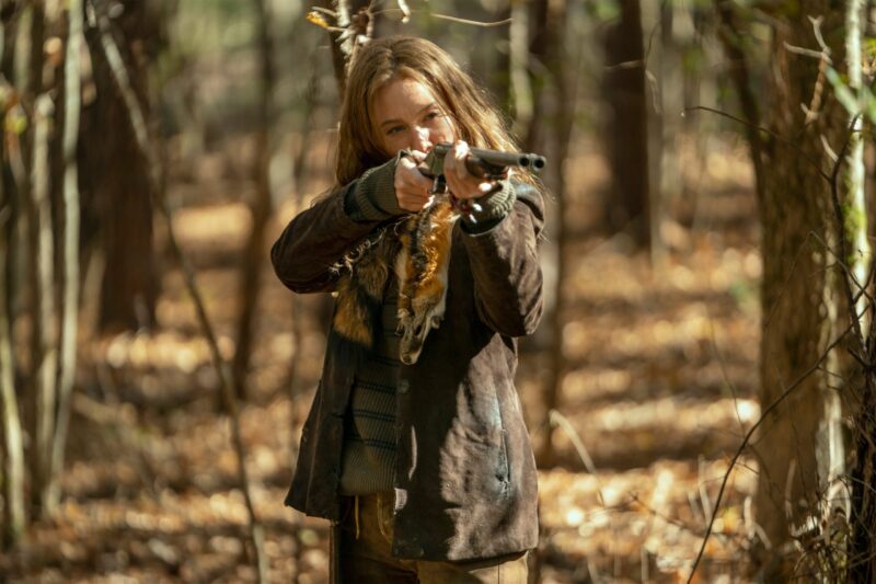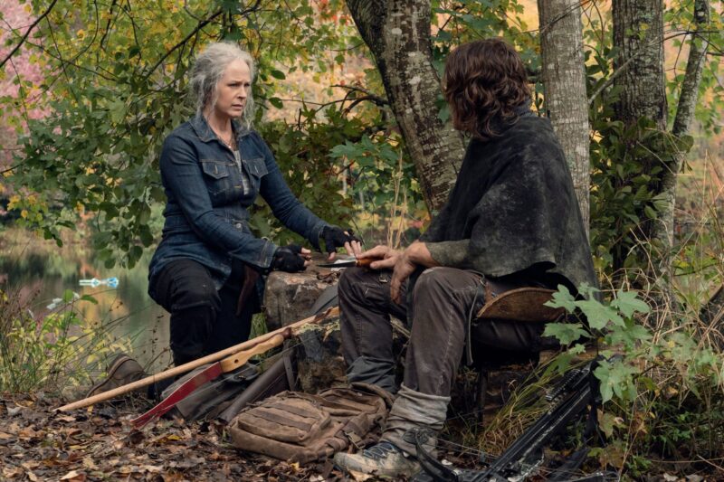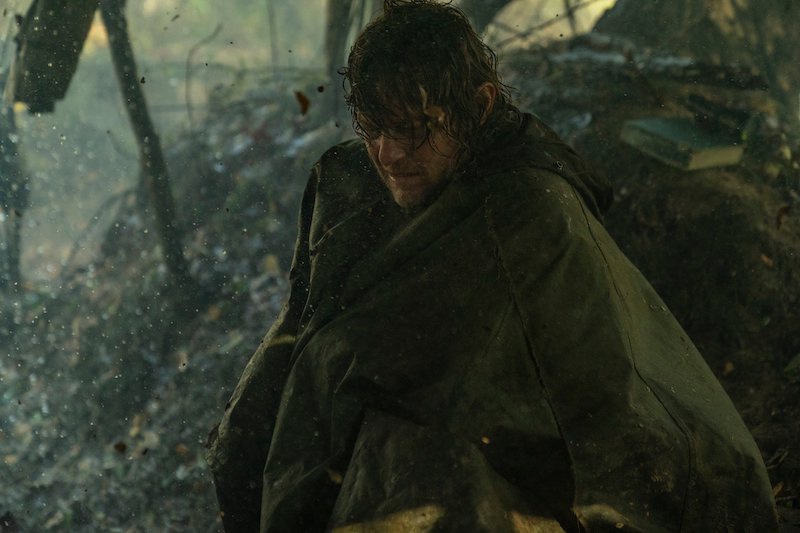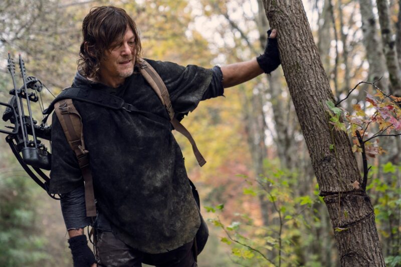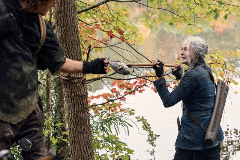 In the photos, we see Daryl and Carol on another adventure, with Daryl still searching for Rick. When the bridge collapsed, it was unclear to them at the time if Rick had survived or perished in the explosion. There’s also a glimpse at Leah (Lynn Collins), the mysterious new character who has a shotgun pointed at Daryl, and, of course, they shared a few photos of Dog because who doesn’t love Dog?