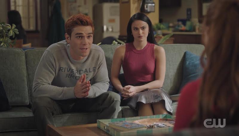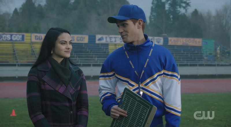 Another Riverdale High football game ends with the Bulldogs losing. Cheryl and the River Vixens leave after having wasted their time. In the locker room, Archie tells his team it was a tough loss, but the Baxter High Ravens (Chilling Adventures of Sabrina, anyone?) are #2 in the league. They fought hard and they’re going to keep fighting. Veronica comes in, telling the team that while she believes Coach Andrews is the best motivator they could ask for, as de facto team owner, she asks what she can do to incentivize them. Veronica suggests giving 10 grand to whichever Bulldog scores first this season. That really hyped them up. Later when it’s just the two of them, Veronica asks Archie what else they can do. Push them more? Archie says he’s already running them ragged, and not to mention they have zero fan support. The Bulldogs were supposed to inspire the town. Riverdale was supposed to rally around the Bulldogs but no one has come to their games. In that case, Veronica says she will get the town to back the Bulldogs again. “You just keep those kids motivated, Coach.”