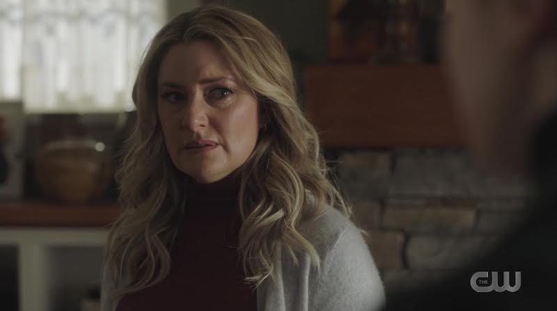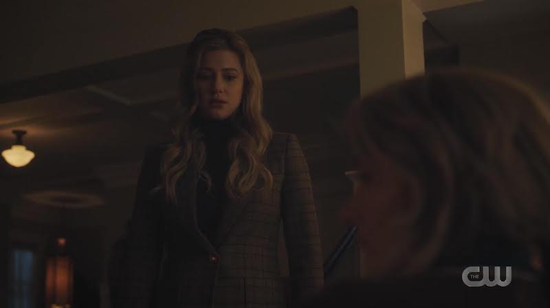 Betty meets with Cheryl at Thornhill and Cheryl wonders if there is any news on Polly. Betty tells her there is, it’s why she’s there. She brings up that when Jason first disappeared, for a long time, no one knew where he was or what happened to him. When Cheryl learned that he died, Betty asks if it was helpful to know the truth. “To say it was soul crushing would be an understatement.” Betty asks what if she never learned the truth, if she had hoped he might still be alive. Cheryl says when she found out, she was able to grieve for her brother. From her experience it is better to know the truth and make your peace with it. Cheryl puts the pieces together, asking her cousin if it means that Polly … Betty nods her head yes as tears start to fall. She doesn’t know what it’s going to do with her mom. Cheryl just hugs Betty, comforting her.