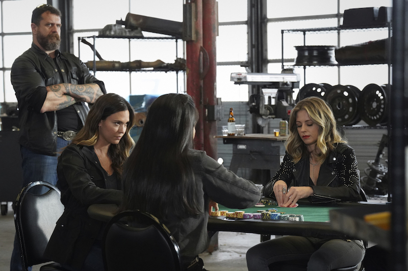 There’s a lot going on in these pictures. Geri’s return is sure to shake things up. Emily’s ghost makes an appearance. Micki is taking Stella and Auggie out for some shooting practice. Additionally, Liam and Bonham are seen toasting someone raising their glasses at what seems to be a family dinner, where Cordell is toasting as well. Will things be mended between the two brothers? We’ll have to tune into the episode to see just what happens.