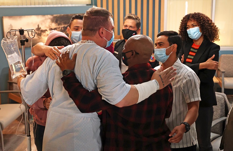 In the present, Judd and Grace’s parents are at her bedside in the hospital as she sleeps. The 126 and Carlos surprise them at the hospital with a buffet of food. Two of Carlos’ fellow police officers arrive and we learn that they’re at the hospital to see a drunk driver … who might just be the person that caused Judd and Grace’s accident. Judd assures his friends and coworkers that he’s okay after overhearing that bit of information, but they don’t look convinced.