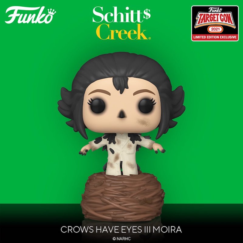 The new Pop!s are part of the Target Con lineup and are exclusive to the retailer. The figures come in two different packs. The first is Moira Rose in full Crowening mode for her role in The Crows Have Eyes III: The Crowening.
