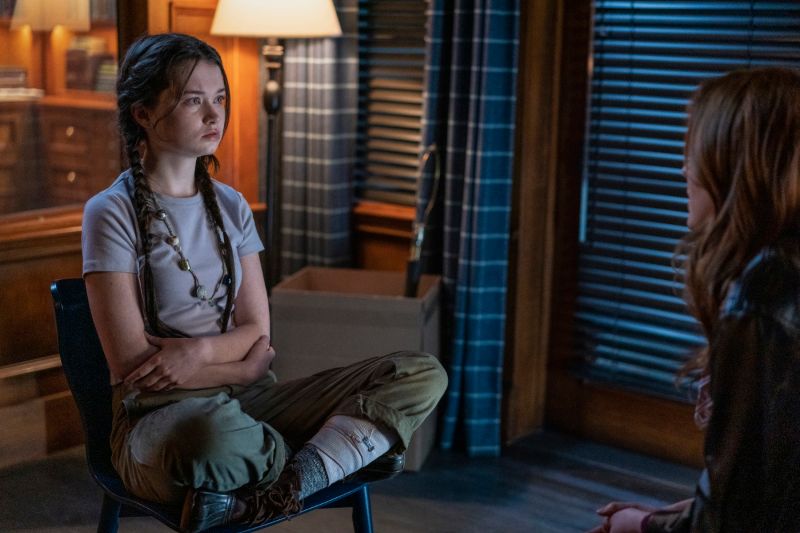 The girl says her name is Birdie, and she lives here alone. Amanda says she’s a volunteer EMT and that this girl needs help or she’ll lose her leg. Birdie agrees to come back with them, but only if she can go back to the island afterwards. As they leave, the camera zooms in on a creepy doll as embers swirl.