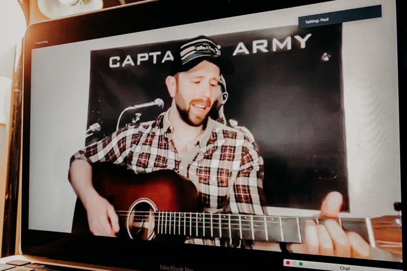 After VIP, the general show started with an overview of the new drinking game word and went right into an amazing show. We got some amazing covers from the two. Hayden’s “500 Miles” cover (originally sung by The Proclaimers) was amazing and haunting. Paul’s cover of “Toss a Coin for Your Witcher”, which is from the popular show The Witcher, saw fans in the Zoom putting their hands up as if they were on a roller coaster and also putting a fun roller coaster filter as their background. We also got to hear a Paul Carella rarity with him singing “Sheriff’s Gun” for only the second time in front of an audience, plus a brand new Hayden song, “Upside Down World.”
