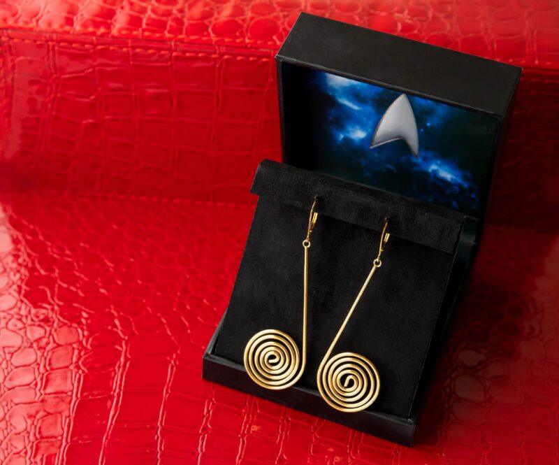 In a press release, Cimino said, “Star Trek’s female characters portrayed positions of military and academic power, inspiring young girls across generations to pursue science, mathematics, computer science, and space exploration. Women were represented as ambassadors and equals, with chief officers routinely relying on their sage advice and perspectives. While there are many more strong women of Star Trek, I had to start this collection somewhere, and what better way than by replicating three iconic earrings of three female characters that empowered us all to reach beyond the stars!”