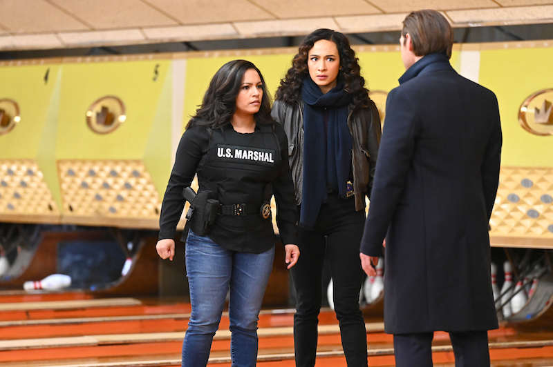 Ainsley is opposite Gil in an interrogation room as he asks why she was expecting Martin’s call and about her visits to him. Malcolm and Dani watch from behind the glass as she says it was dumb but meant nothing. She tells Gil they didn’t plan a breakout and Martin was the one who reached out to her. In a flashback, Martin calls Ainsley on his old office phone and offers “a sympathetic ear.” Gil says they can take a break and heads to his office where he tells Jessica that Ainsley said nothing helpful. Gil wonders if he should’ve looked out for her more, but Jessica says he couldn’t have protected her. Meanwhile, Malcolm talks to Ainsley. He knows she’s lying and needs the truth. He tells her Martin’s tried to convince Malcolm he’s just like Martin for years, but Ainsley wonders if Martin is right about her. In a flashback, Martin lays out Ainsley’s “psychopathic tendencies” in a way that makes it hard to argue with his point. In the present, Malcolm tells her if she really was like Martin she wouldn’t be so worried. In the flashback, Martin tells her the trick is to make everyone think she’s normal. “Pretend to feel when you don’t. Cry every now and then. If you can master that, the world is your oyster.” In the present, a tear slips down Ainsley’s cheek while Malcolm reassures her. She says Martin told her a story about apple picking when they were children at a particular orchard upstate. Malcolm believes that story is a clue, Martin’s invitation to Ainsley to join him on the run.