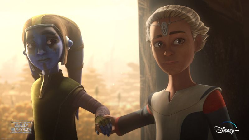 Taking some time to herself, Omega sits in Clone Force 99’s ship and seems to reflect on everything that’s happened. The emotional moment results in her taking off her headpiece from Kamino as she wipes away tears. Meanwhile, Hunter makes the decision to let Omega leave Saleucami with Cut and his family.