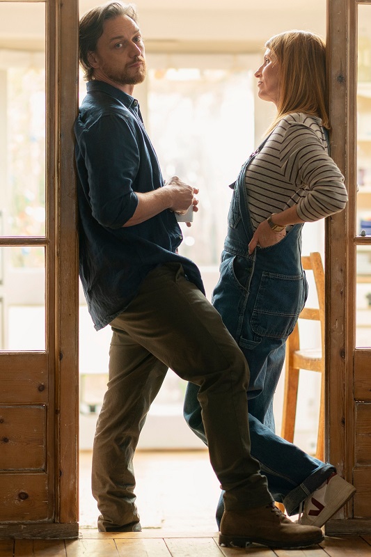 On the film, McAvoy said, “Dennis writes so wittily for these characters and his script had me within the first few pages. When I heard Sharon was involved with Stephen Daldry directing it was a no brainer. It’s a hilarious, heartfelt, entertaining and unconsciously funny exploration of a relationship and a couple facing real tragedy across a year we have all lived through.”