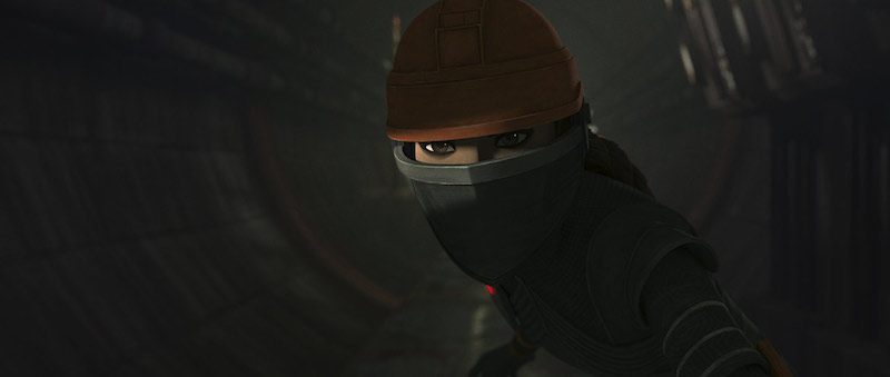 Terror washes over Omega’s face as she runs through the streets of Pantora with Fennec on her tail. She finds a maintenance tunnel and climbs down hoping to lose her pursuer. Her running comes to a stop when she heads straight into something that knocks her down. Thankfully, it’s Wrecker, here to save her. As they begin walking away, Fennec shows up. Wrecker sets the kid down, tells her to go to the ship, and walks toward the bounty hunter while cracking his knuckles. However, Fennec uses fast-thinking, side steps Wrecker, and slams him into the tunnel wall and knocks him out. Omega makes it up the maintenance tunnel ladder and shuts the door behind her, locking Fennec out.