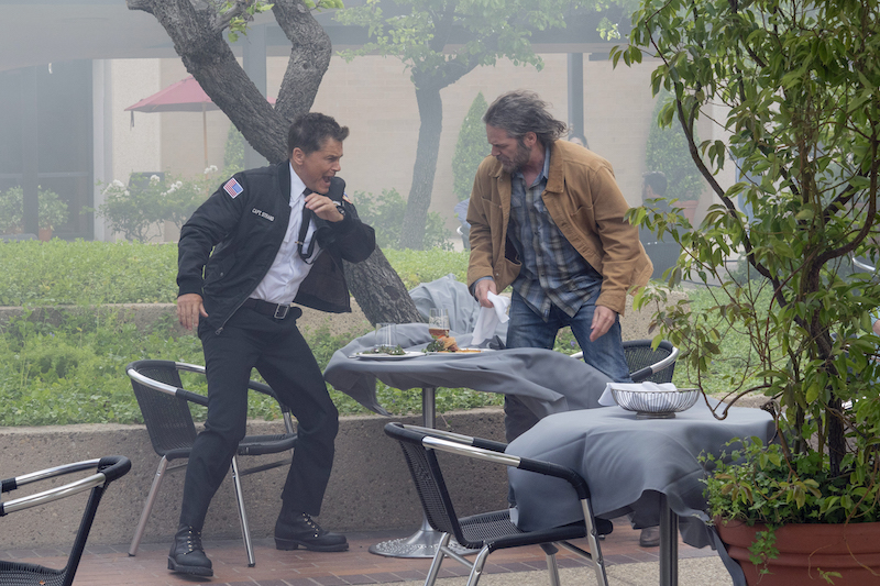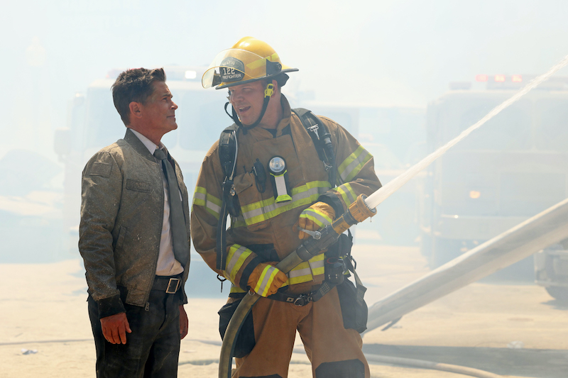 Captain Tatum of the 129 notices Mateo and asks what he’s doing over there. Mateo says he was in the neighborhood picking up lunch when the storm hit. Tatum thinks he needs to reread his academy manual. Owen interrupts Tatum and tells him it’s not like he did any better. The only reason that he’s out there today is Tatum’s rig didn’t check in for hours. Tatum tells him that’s different. They broke down in the dust storm, which killed all their comms.