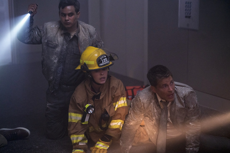 The 122 roll up to the scene, and Andrews tells Paul and Marjan to start triaging until medical lands. Paul looks out onto the streets and sees people grouped together with colored sheets on the ground. Marjan asks someone who separated them into groups, and a guy says that handsome firefighter. “Hey, I’ll be damned.” Judd, Marjan, and Paul spot Owen and Mateo. After grabbing supplies, Owen, Mateo, Paul, Marjan, and other firefighters get back to the elevator. Four out of the five people make it out, but the last one, Graham, gets stuck in the elevator as it slowly starts moving down. Owen gets on top of it and opens the hatch, pulling Graham out. They both make it up just before the elevator drops to an explosive end. They all walk out of the building, and Mateo tells Andrews the prognosis of the civilians.