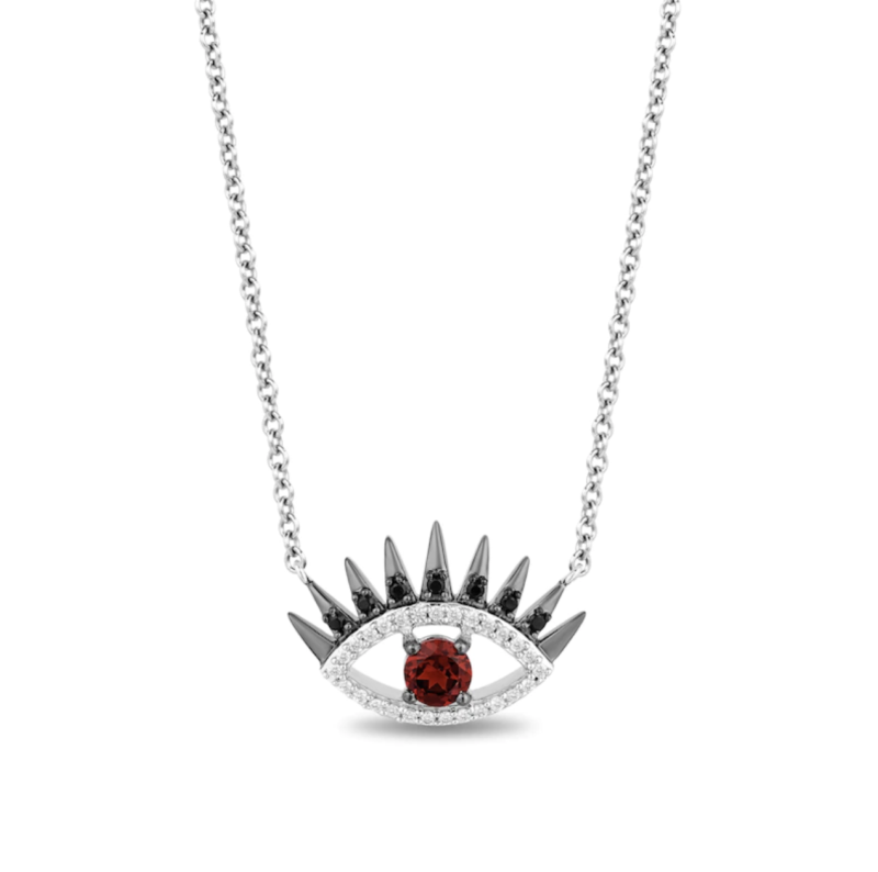 Zales Enchanted Disney Villains Cruella De Vil Garnet and 1/6 CT. T.W. Diamond Evil Eye Necklace in Sterling Silver