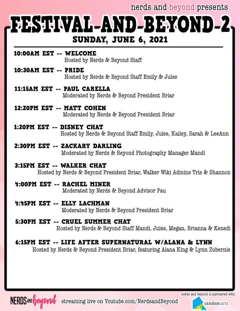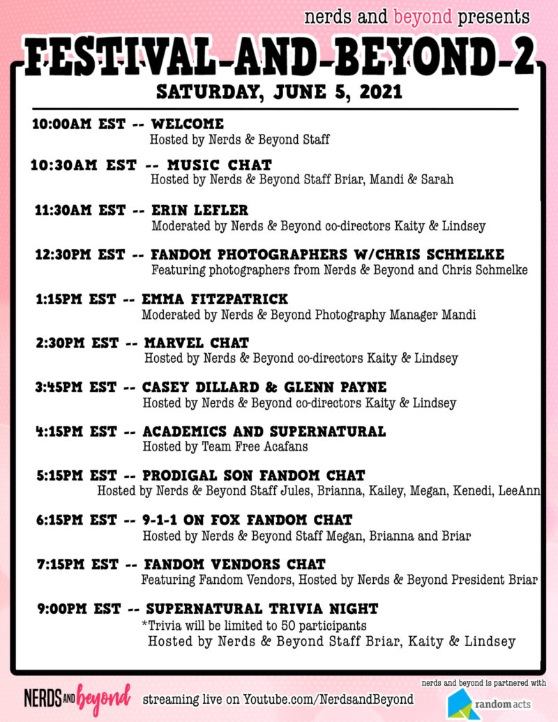 Festival and Beyond 2 is a virtual celebration hosted by Nerds and Beyond. The event is for fans by fans, and features discussions with actors, musicians, artists, fandom creatives and more.