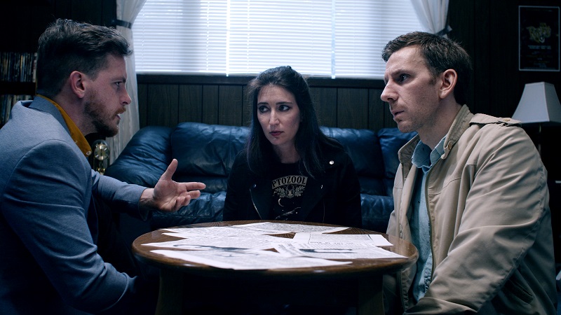 Going into Killer Concept, it’s important to keep in mind that there was no actual script, just improvised dialogue. Thus, in watching the interactions between the main trio, you can better appreciate the way that Dillard, Payne, and Bryant are able to play off of one another as the story develops and the stakes grow higher. Payne and Bryant’s characters in particular function well as opposites, what with Seth’s keen, eccentric attitude and Mark’s peculiar, reserved approach. Meanwhile, Dillard’s Holly serves as both an important bridge between both and the sensible, grounded one of the group.