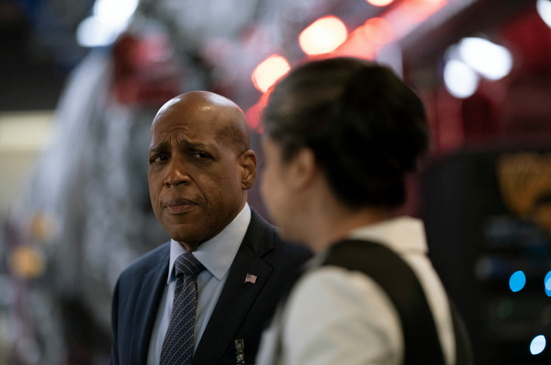 Michaela walks into Captain Bowers’ office, only to see Jared in there as well. She tells her that the judge for her brother’s arraignment was completely off the rails. Bowers, though, tells her that they were just about to call her in. She says they received a directive from the mayor’s office. Effective immediately, the NYPD are to report all 828 passenger-related cases, no matter how small, directly to the FBI. Jared adds on that they also want them to go through all of their old case files, and follow up on anything that involves an 828er. Michaela figures they’re targeting passengers, which explains Ben. All Bowers knows is that this is bigger than the NYPD, noting that there have been arrests all around the world. Michaela says they have to fight back somehow, but Jared isn’t sure there’s anything for them to do at this point. He tells her it’s probably best for her to not get too involved. Michaela realizes that they waited until the last minute to tell the 828 passenger cop and Bowers says it’s because it’s not pleasant. While they haven’t made a decision on Michaela yet, they want to review all of her case files since she returned.