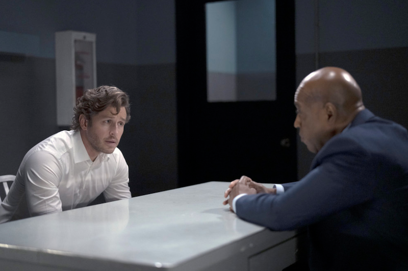 Ben is in his cell at the precinct and Grace visits him, upset. Ben apologizes and tells Grace he knows he went too far. “Am I losing you?” Ben assures Grace he’s still him, still the same person he’s always been. He tries to reason with her, that everything he’s done is to save Cal and Michaela. Grace understands that, but she says it does them no good if in saving the Lifeboat he drowns in the process. She needs to know that he knows that. Ben says the Lifeboat isn’t going away, and Grace says they need to find a better way than this. Tearing up, they hold hands through the cell bars and Grace leaves after telling him she’ll see him at the arraignment.
