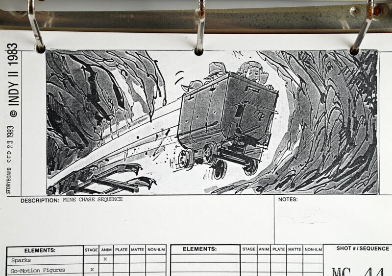 - Set of Production-Used Mine Chase and Additional Storyboards from Indiana Jones & The Temple of Doom (1984) est: $1,500 – 2,500 (£1,000 – 1,700)