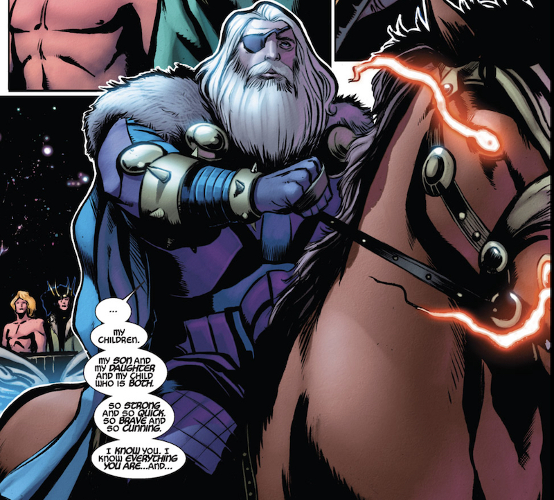 When in Lady Loki form, she also uses all forms of female pronouns, including Goddess, as well as Odin himself referring to Loki as both his son and daughter (Loki: Agent of Asgard #11 and Original Sin – Thor and Loki: The Tenth Realm #5.5).