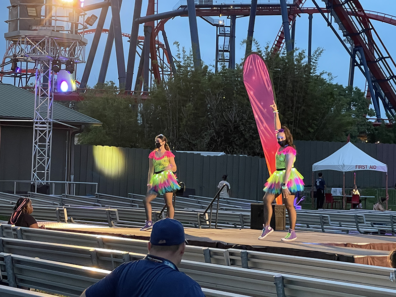 Before the fireworks began, guests can enjoy a pre-party in the field to get them revved up and excited for the show! It includes dancers on stage with music from all genres and times, glowing costumes and props including glowing wings and umbrellas, and glow items that are available for purchase so everyone can go with the glow! They encouraged anyone to get up and join the dancers, and we couldn’t help but join them! It was a perfect pre-party to prep us for their nighttime firework display!