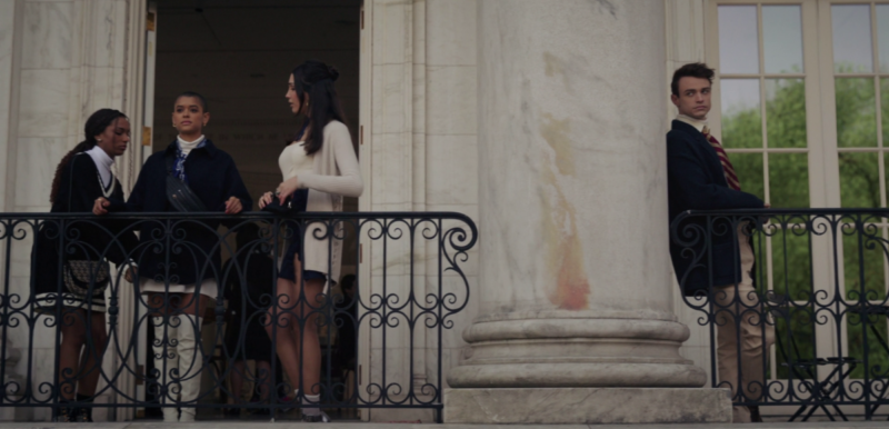 Julien has her arm looped around a Louis Vuitton handbag, its golden embellishments matching the prestigious architecture of Constance Billard upon posing, ready for her first post of the school year. Only for the ashen shoulder-bob, who we now realize is a teacher, to interrupt with a coffee spill. Kate, that’s her name, embarrassingly follows another faculty member with Julien left behind plotting her demise. Perhaps, something up the heart-pinned sleeve of Blair Waldorf; Nate, on the other hand? Not only a red-strike for potential suspects but also our first name drop; zoom out a little, there’s a past student who goes by the name of Rebecca Shaman telling Gossip Girl’s folklore beside a desktop computer, pulling up the website for a candid photo of Dan Humphrey to surface.