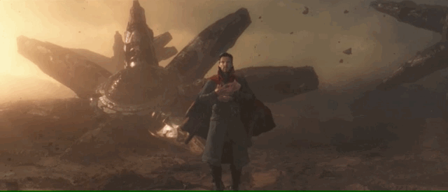 After Bruce Banner’s explosive arrival to the New York Sanction in Avengers: Infinity War, Strange’s sandwich run is stopped before it can even begin. While he runs back up the stairs to see what the hell just came crashing through his ceiling he magically changes out of his street clothes and into his fighting attire. Slick move, Doc.