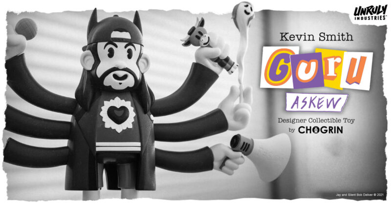 Artist and storyteller CHOGRIN is back with his latest vinyl collectible toy collection dedicated to podcast master, writer, director, filmmaker, and actor Kevin Smith (Jay and Silent Bob franchise). The Guru Askew series from Unruly Industries and comes in three excellent editions that can also be seen on Slideshow Con from July 19 to July 25.