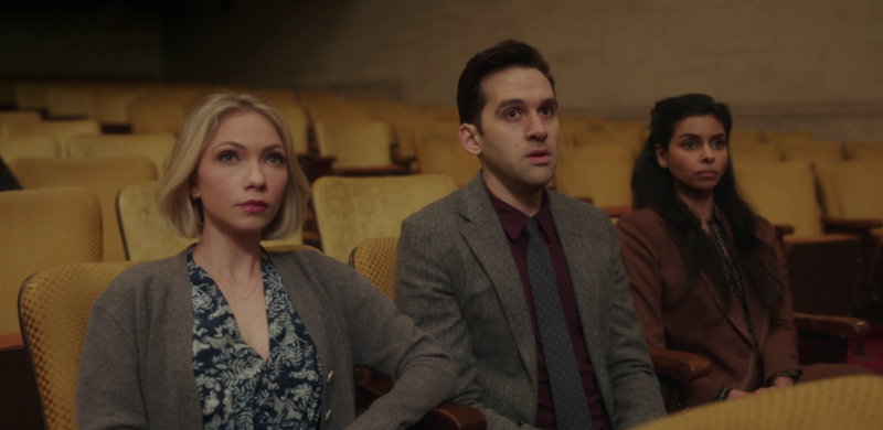 Green eyeshadow dusts Zoya’s eyes as she nervously walks up to Otto, who is waiting for her on the theater’s steps. Usually she takes the bus, which he hints at, but this is a newly designed Zoya, and it comes with a few alterations. Max doesn’t exactly want to read possible sext-y interactions from his dad, so Aki summarizes the messages; it includes a date night proposal for the following weekend. Davis’ secretive girlfriend surprises him; she’s thinking this is the night they’re going public, he’s wondering what exactly she’s doing showing up there. Ticket in hand, Rafa walks up to Max and Aki, Max trading his seat for the one that’s been gifted. The pre-show paints the theater in a lustrous blue, Max pigeonholing himself between Audrey and Aki. Rafa sits himself down next to Roy, who gives him a puzzled look.