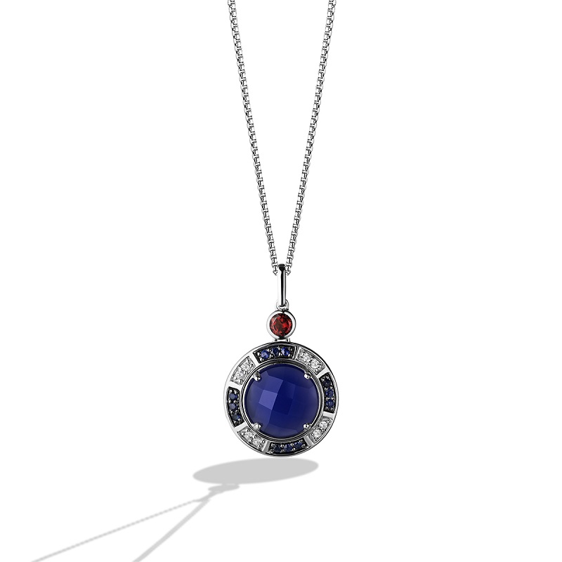 The R2-D2 pendant and ring feature a rotating design mimicking the way the droid spins its head. Each item is designed to look like the droid’s signature build, and feature, diamond, blue onyx, blue sapphire, and garnet stones. The necklace comes on an 18-inch chain, while the ring comes in sizes 5-9.