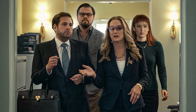 The very Trump-esque President Orlean (Meryl Streep) is in a meeting with scientists Kate Dibiasky (Jennifer Lawrence) and Randall Mindy (Leonardo DiCaprio) discussing an incoming asteroid that will destroy the Earth as we know it. In a very anti-science mindset that we’ve come to be surrounded by in recent years, Orlean and her Chief of Staff/son, Jason (Jonah Hill), downplay the severity of the 99.78% chance of this asteroid hitting the Earth. But hey, at least it’s not 100%! So, let’s sit tight and assess …