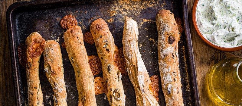 The technical challenge saw the bakers presented with a recipe that they had never seen before. The bakes are ranked from worst to best in a blind judging. This week, the bakers were asked to produce a batch of 15 olive and cheese ciabatta breadsticks. The judges expected a holey texture with an even distribution of fillings. The breadsticks all needed to be crispy on the outside and all the same size and color. They had two hours to produce the breadsticks and a tzatziki dip.