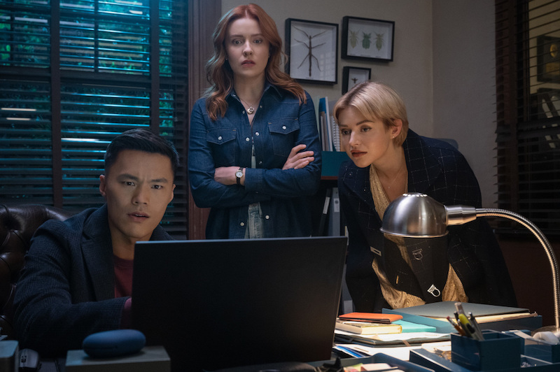 Nancy remembers that she has a magic relative who can see memories, and she goes to Temperance for help. Bess accompanies them as Temperance’s new student. Temperance says she can help, but she needs access to Trott in his cell. Temperance texts Park to distract him, and Nancy is slightly miffed when he responds immediately to Temperance (who calls him “Nelson”). Bess agress to distract him at Icarus Hall while Temperance and Nancy go to Trott. Bess is thrilled at Nancy and Temperance working together, saying “Team NaTempEss … assemble!” (I would die for Bess.)
