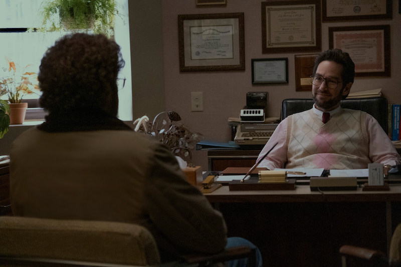 There’s always something so captivating about beginning a series at the end, and that’s just what The Shrink Next Door has done. Starting at a lavish party in 2010, it leaves us wondering just what happened as we see a man who is clearly Will Ferrell’s Martin “Marty” Markowitz beginning to dig a hole and finding blood on his shirt after causing some destruction on Paul Rudd’s Dr. Isaac “Ike” Herschkopf’s yard late at night after the party. At the end of the episode, we see that the hole is for some decorative cow statues, that Ike had vowed to one day purchase during his and Marty’s consultation in 1982, where the majority of the episode takes place.