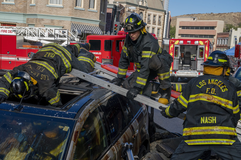 FOX has released new images for 9-1-1 season 5, episode 9 entitled “Past is Prologue,” and it looks like the 118 is in for a potentially deadly call as a sinkhole opens up in LA! The full synopsis reads: