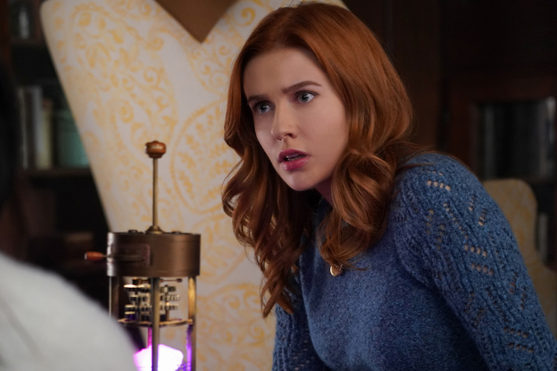After the successful ritual (more on that later), Bess says goodbye to Odette by burying her broken crystals. Bess asks for a sign that Odette made it to peace. Just then, Addy appears — she was dropping off Carson’s jacket. It seems Odette approves. Bess asks Addy out again, and it appears they’re starting something together.