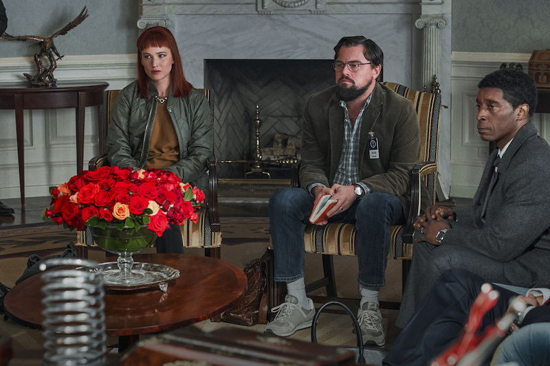 Leonardo DiCaprio continues to prove he’s one of our generation’s best, which comes as no surprise. I consistently forget how well he performs in comedic roles and this film is the perfect reminder of just how many different facets he can seamlessly meld into one character, and how he can manage to add numerous levels of depth even in a comedic role. This was obviously a passion project for DiCaprio, who has spent years of his life tirelessly utilizing his public position to further the conversation about climate change. He sits on the board of numerous environmental agencies as well as founding his own, and to find a way to hammer the urgency of the Earth’s situation at hand with this script, filmmaker, and cast was clearly an indispensable opportunity for him, and he puts his all into Randall Mindy’s descent from Michigan State astronomer to purveyor of Earth’s fate.
