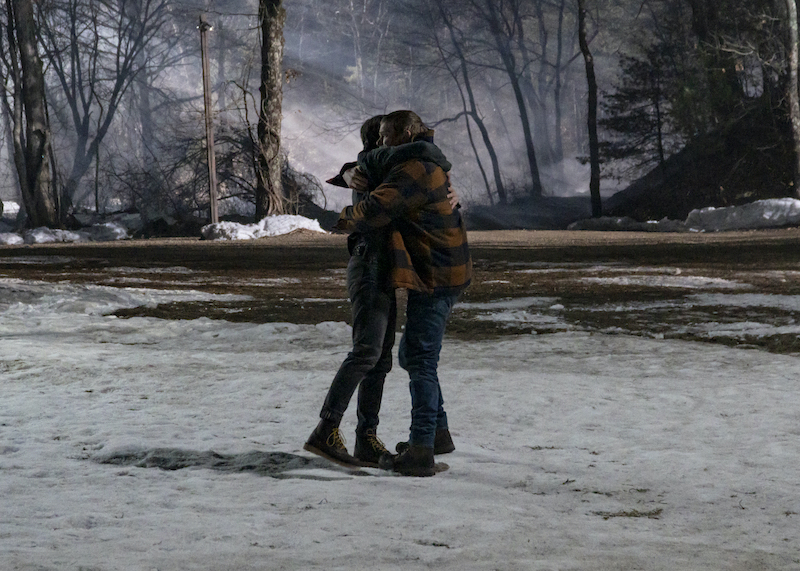 With Kurt out of the room, Harrison turns off airplane mode and sees several missed calls. A moment later, Kurt returns, dressed to kill (literally). Harrison becomes frightened as Kurt guides him out of the cabin using the rifle. Harrison is scared and confused, begging Kurt not to hurt him. Kurt tells Harrison to run, and so, he runs. Thankfully, Dexter shows up. However, when Kurt realizes it’s not Elric in the car, he begins shooting. Dexter slams the gas, nearly hitting Kurt but instead driving over the rifle. Dexter steps out, and he and Harrison tightly embrace. For now, Kurt is in the wind.
