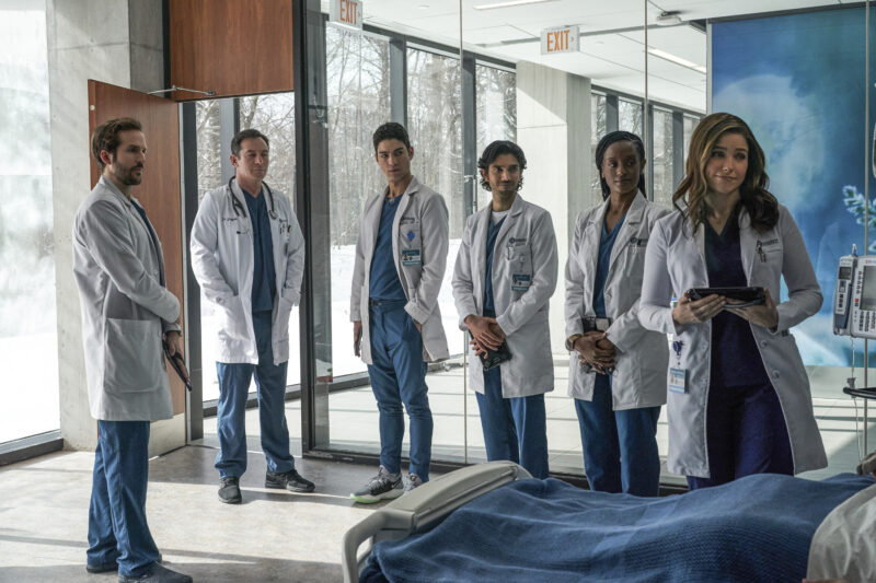 Next, we see Rob going through physical therapy as Sam’s mom, Vivian, is there. He wants to get back into surgery, and she tells him he needs to be proctored and he’s months away. He asks for Sam to do it and for Vivian to ask her. Sam agrees to supervise him.