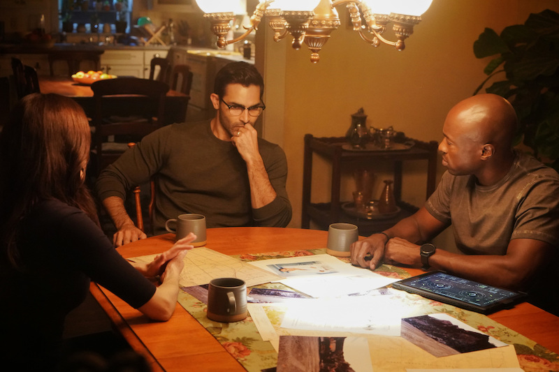 Clark pops in to tell Jordan he’s heading to his brothers fortress and Jordan asks to accompany him and Tal-Rho so he can be there for him. Tal grabs the orange stone key to reunite them with their mother … or, at least, the copy of her. She’s surprised to see both of her sons alive and together. This consciousness was taken before the destruction of Krypton, so it’s not the same one that was in season 1.