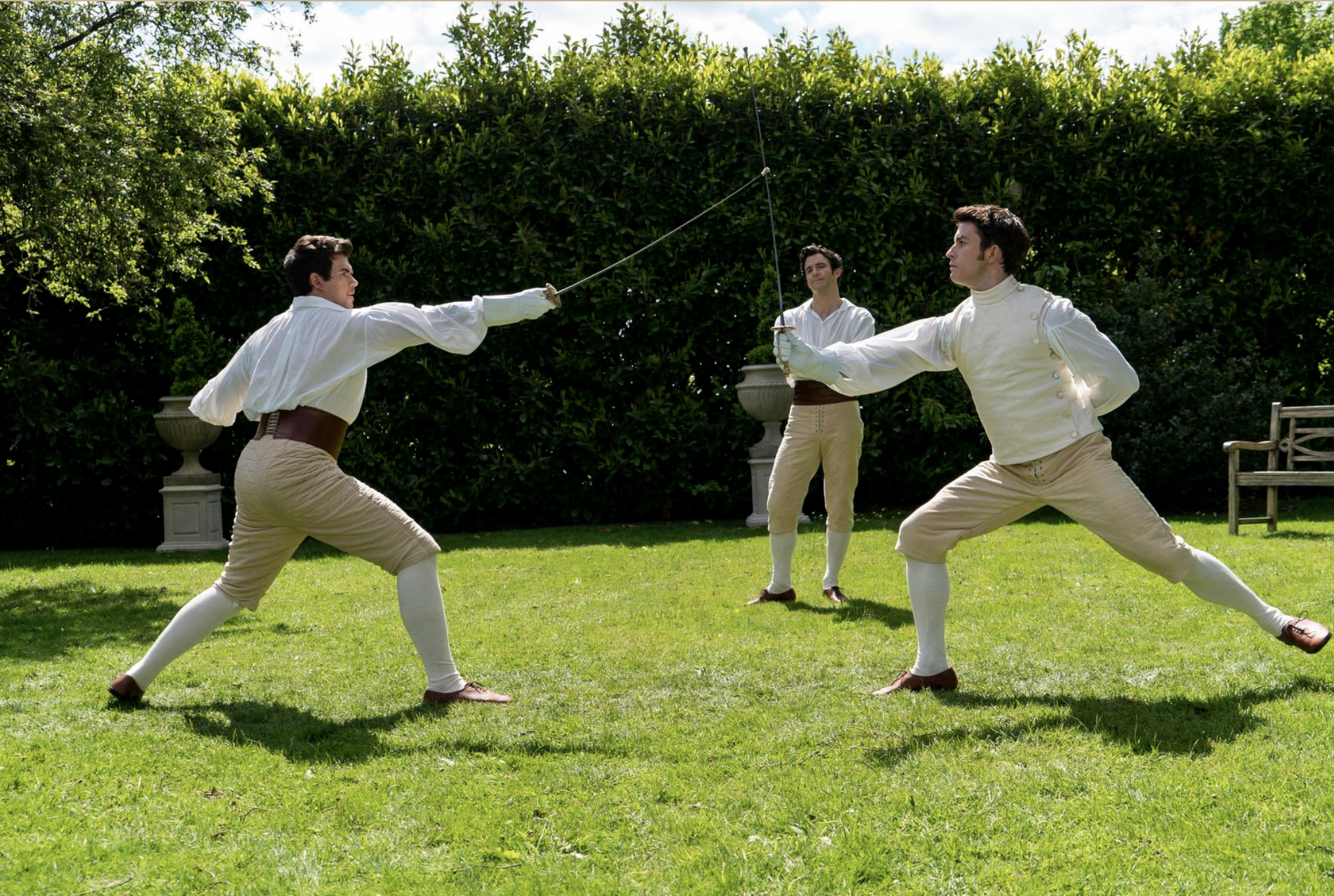 The Bridgertons remain the height of fashion with the Viscount setting his sights on finding a bride. It certainly seems from these images, dear reader, that Miss Sharma may have caught his attentions. Lady Featherington and her gaggle of young ladies are also pictured, though this author can’t say the new color palette of their dear mamma do anything for the young ladies complexions. In any case, the muted tones might serve in drawing suitors this season rather than scaring them away. We mustn’t overlook the latest image of our Queen, who sits reading a most salacious edition from yours truly. Will her Majesty’s luck in choosing our diamond of the season last year hold strong once again? I’ll leave these images for you to examine yourself, dear reader.