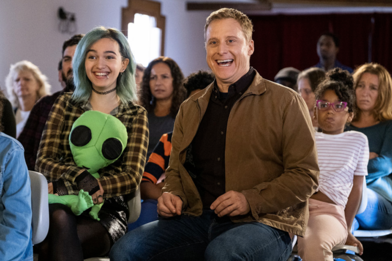 Previously on Resident Alien … during “Radio Harry,” Liv questioned, not remembering dropping off her dress, the one she wore when Harry did the mind wipe, to the dry cleaners. She is determined to find out why she is missing so much time. Also, shout out to Liv for going to the uncomfortable dinner with D’Arcy and her parentals and checking on Sheriff Mike after he leaves upset after his date.