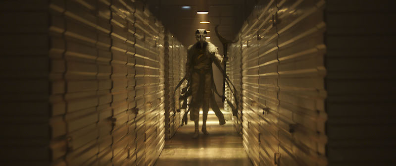 As Arthur’s followers stand up, waiting to be called to action, Steven begins to debate the merits of Ammit’s approach to judgement. Arthur continuously asks Arthur where the scarab is, and eventually Layla walks in holding it. As Khonshu eggs Steven on from behind, Layla hurriedly tells him to “summon the suit.” Unfortunately for Steven, he has no idea what she’s saying and why she’s telling him to summon soup. Arthur uses his cane, which is imbued with Ammit’s power, to call forth a jackal as Steven and Layla try to escape. Steven begins to blubber about the fact that he’s going to die in an evil magician’s man cave, still refusing to let Marc take over.