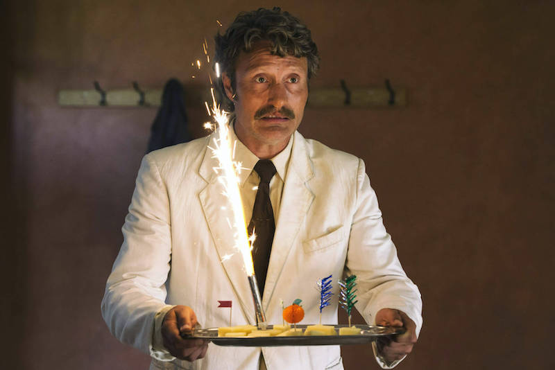 Elias is a far, far, FAR cry from Hannibal Lecter. He’s also the perfect character to showcase Mikkelsen’s ability to slip into any kind of role. Elias is a strange one, and Mikkelsen not only emphasizes that, but his performance is just so dang funny. He brings every little quirk out in full force in a way that both draws similarities to the others and makes Elias stand out. His comedic timing is impeccable, and there are several moments that will have viewers laughing out loud. Mikkelsen so wholly, effortlessly embodies Elias. This is an odd movie, I won’t lie. But it’s worth watching, and Mikkelsen will certainly leave an impression.