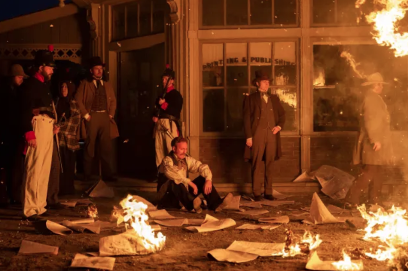When Joseph Smithās brother Hyrum destroys a printing press, Joseph is forced to go into hiding. The others, especially Brigham Young, are worried that if Joseph doesnāt surrender, the church will be invaded by the U.S. government. Their polygamist ways will be discovered, and ended. John Taylor adds a line to one of Emma Smithās letters urging Joseph to surrender, leading to his capture and death at the hands of a mob. This left two sects: Emmaās monogamous one, and Brighamās polygamist one.