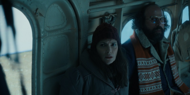 Murray and Joyce sit in the pilots’ seats, but they can’t stop what’s happening. The plane continues to plummet, and it eventually crashes violently in a snowy desert somewhere in Russia.